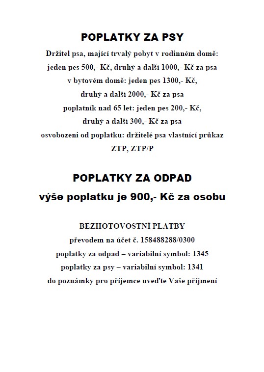 INFORMACE K POPLATKŮM ZA PSY A ODPADY