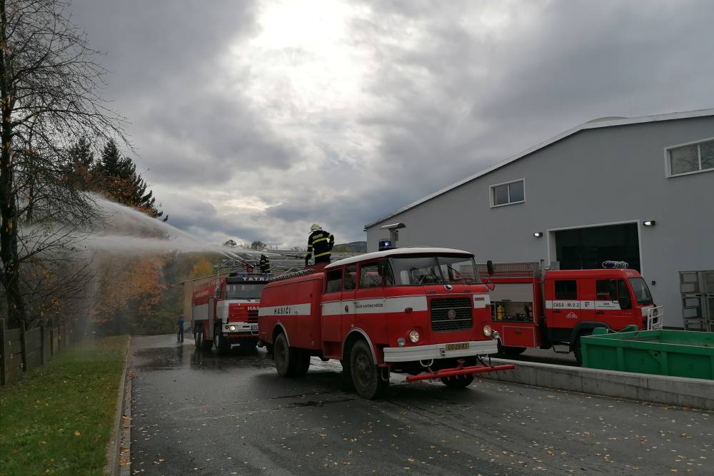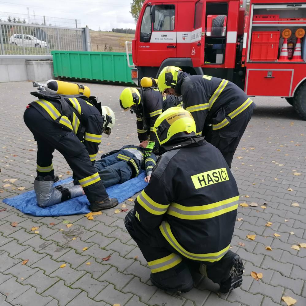 Simulovaný požár skladu na technické plasty V Bělé nad Radbuzou s uvězněnými osobami