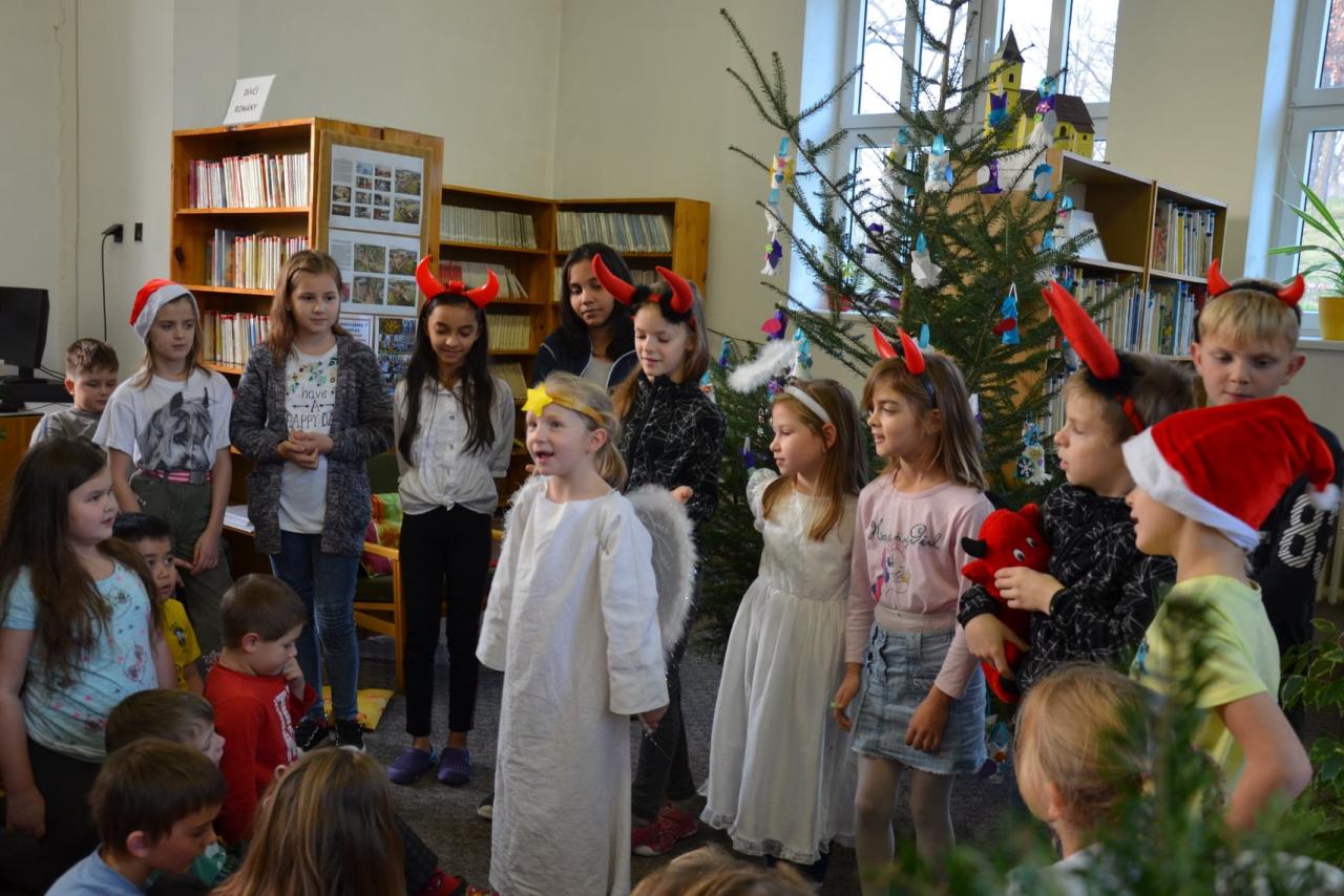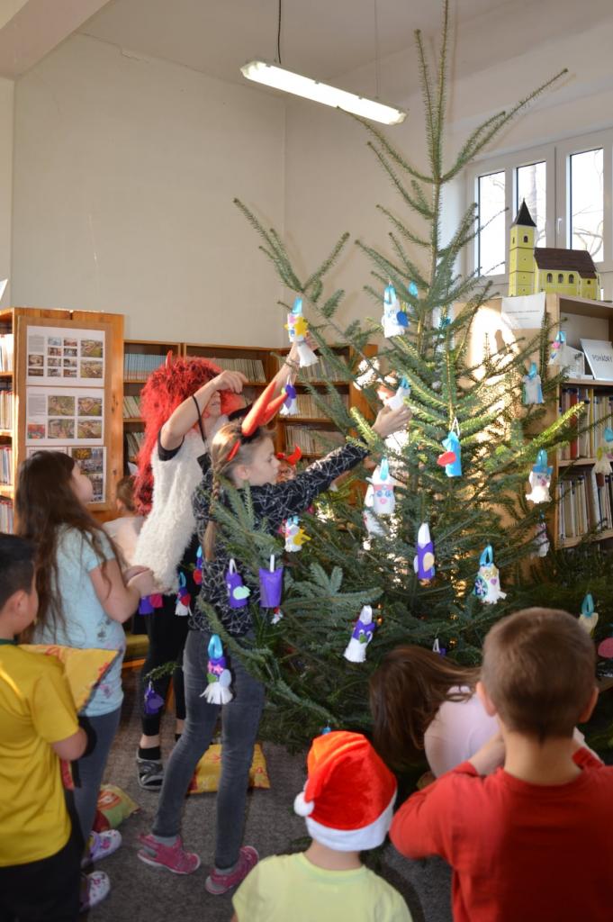 Krásné pohádky o čertech slyšely děti ze školní družiny poté, co nazdobily stromeček. Krásné "soví" ozdoby vlastnoručně vyrobily. U stromečku si ještě zazpívaly a zarecitovaly.