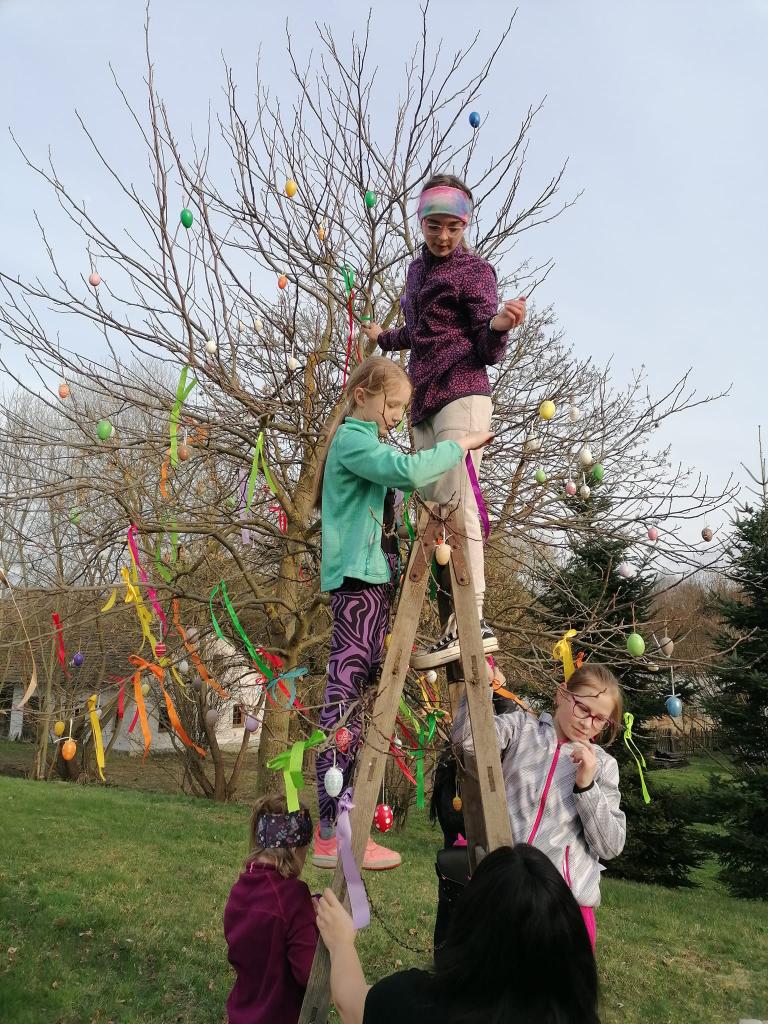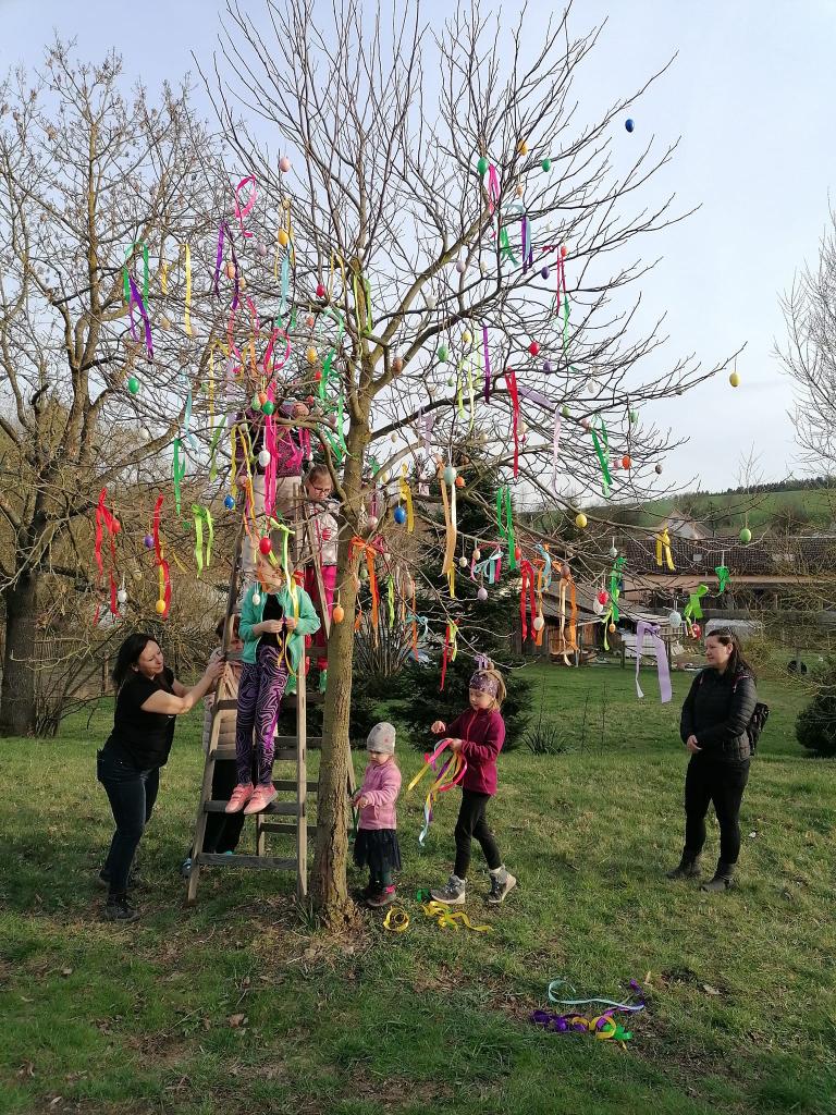 Na návsi v obci Újezd Sv. Kříže